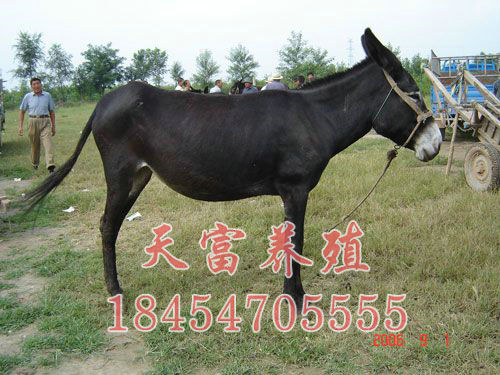 肉驢驢體(tǐ)格高大(dà),結構勻稱,外(wài)形美觀,體(tǐ)型方正,頭頸軀幹結合良好。毛色分(fēn)三粉(鼻周圍粉白(bái),眼周圍粉白(bái),腹下(xià)粉白(bái),其餘毛為黑色)和烏頭(全身毛為黑色)兩種。 成年種驢體(tǐ)尺:公驢體(tǐ)高在142厘米,體(tǐ)長為143.6厘米,胸圍為152.8厘米,管圍為18.7厘米,母驢相應為140、137、160和16.4厘米。 公驢前軀寬大(dà),頭頸高揚,眼大(dà)嘴齊,有悍威,背腰平直,尻稍斜,肋拱圓,四肢有力,關節明顯,蹄圓而質堅。 德州驢平均體(tǐ)高一(yī)般為130~135厘米,最高的可達155厘米。